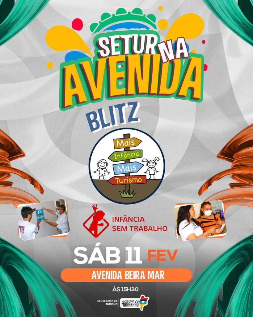 A Setur-MA, por meio do Programa ‘Mais Infância Mais Turismo’, em parceria com Ministério Público do Estado do Maranhão, através do Programa ‘Infância sem Trabalho’, irão realizar em conjunto ação da blitz de conscientização e sensibilização da população sobre o tema da exploração sexual e trabalho infantil. O local foi escolhido por ser uma área que tem um grande fluxo de pessoas brincando o carnaval na grande ilha.